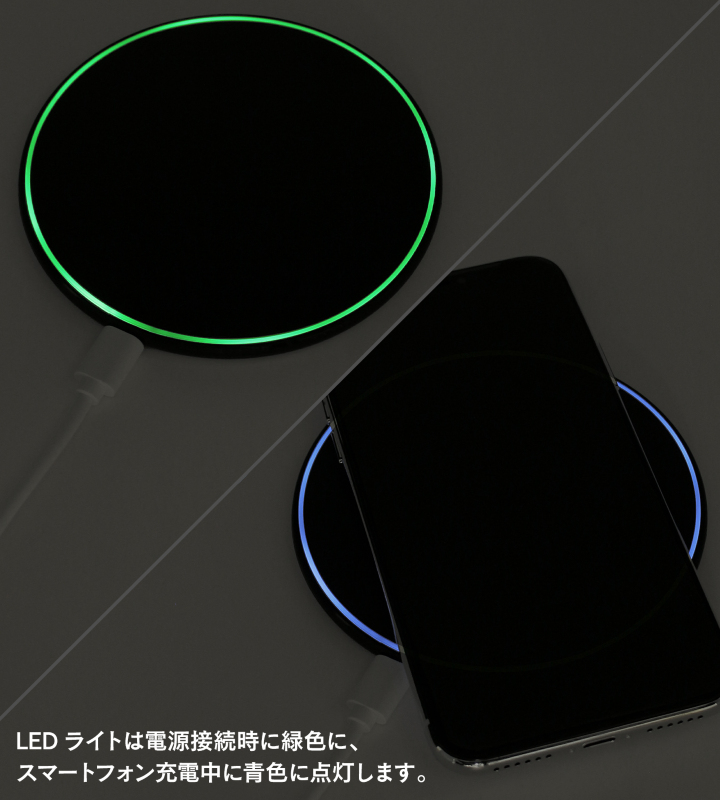 ※充電中または正しく機器が置かれていない場合、高温になる場合があります。その際はご使用を控えてください。