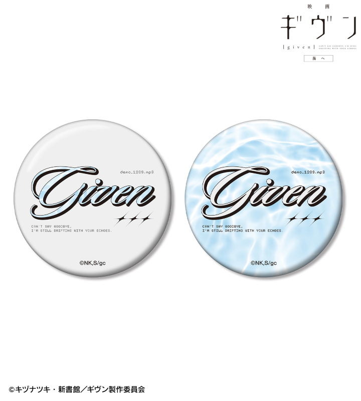 バンド名をメインにデザインし、『映画 ギヴン 海へ』をイメージした缶バッジ2個セットに仕上げました。