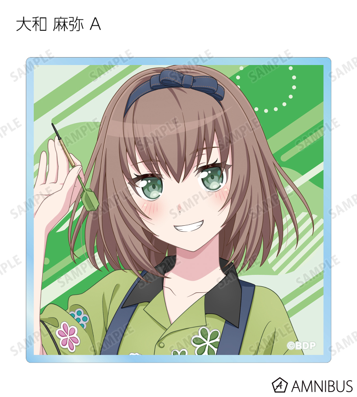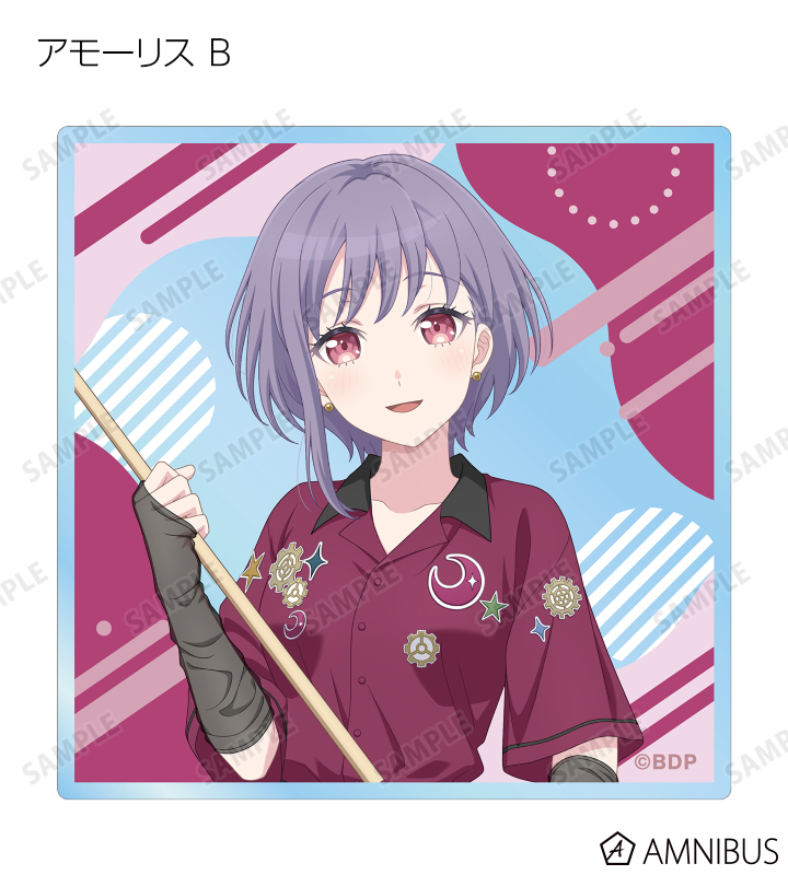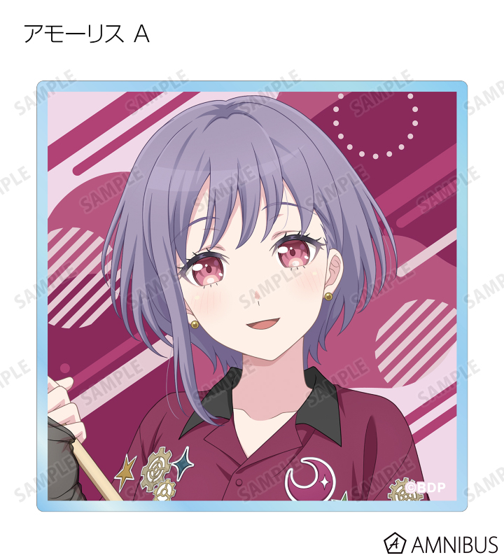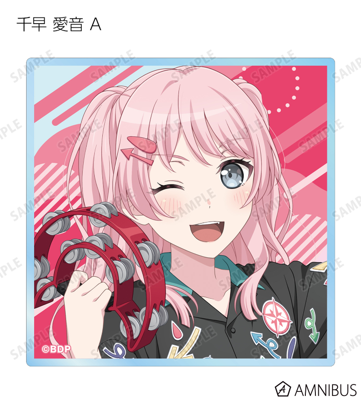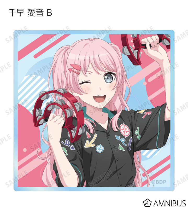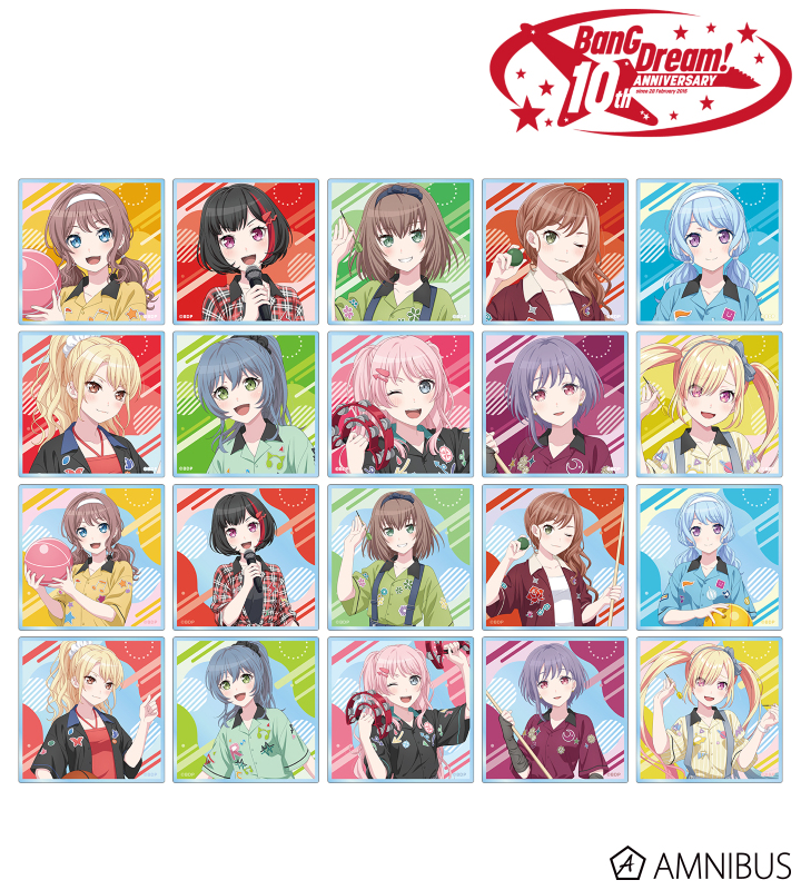 山吹 沙綾、美竹 蘭、大和 麻弥、今井 リサ、松原 花音、桐ヶ谷 透子、ロック、千早 愛音、アモーリス、仲町 あられの描き下ろしイラストをアクリルカードに仕上げました。