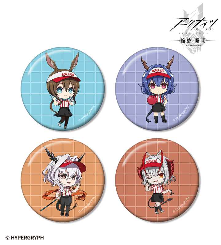 『アークナイツ【焔燼曙明/RISE FROM EMBER】』×「ROUND1」のコラボレーションアイテム「ちびキャラ アクティビティスタッフver. 缶バッジ4個セット ver.A」の登場です。