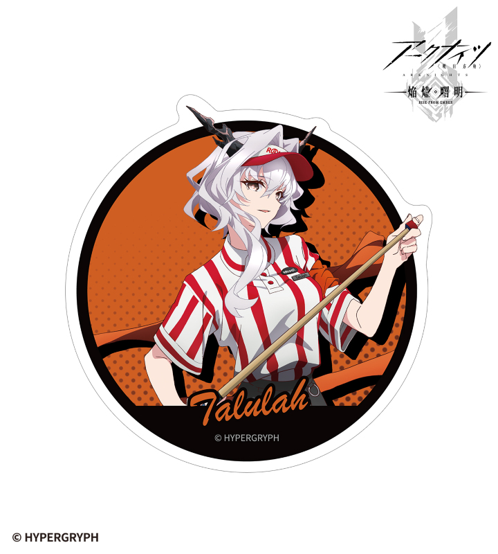 『アークナイツ【焔燼曙明/RISE FROM EMBER】』×「ROUND1」のコラボレーションアイテム「描き下ろし タルラ アクティビティスタッフver. ダイカットステッカー」の登場です。