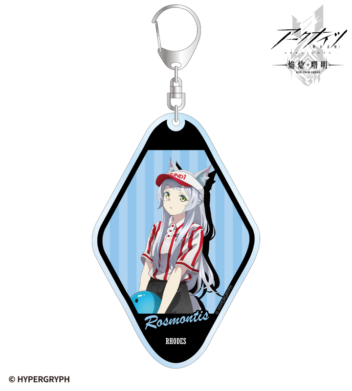 『アークナイツ【焔燼曙明/RISE FROM EMBER】』×「ROUND1」のコラボレーションアイテム「描き下ろし ロスモンティス アクティビティスタッフver. BIGアクリルキーホルダー」の登場です。