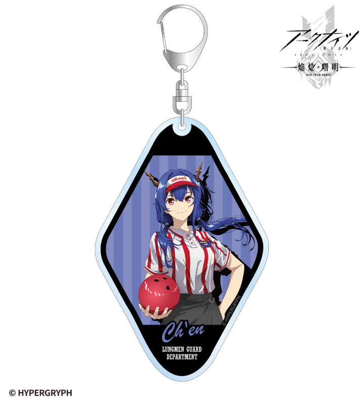 『アークナイツ【焔燼曙明/RISE FROM EMBER】』×「ROUND1」のコラボレーションアイテム「描き下ろし チェン アクティビティスタッフver. BIGアクリルキーホルダー」の登場です。