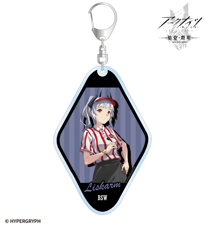 『アークナイツ【焔燼曙明/RISE FROM EMBER】』×「ROUND1」のコラボレーションアイテム「描き下ろし リスカム アクティビティスタッフver. BIGアクリルキーホルダー」の登場です。
