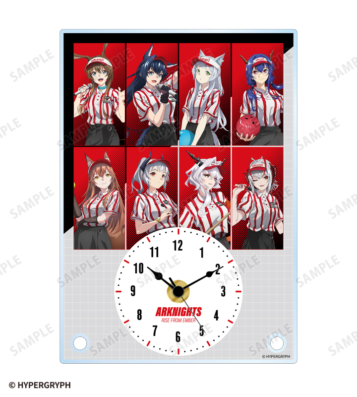 『アークナイツ【焔燼曙明/RISE FROM EMBER】』×「ROUND1」のコラボレーションアイテム「描き下ろし 集合 アクティビティスタッフver. アクリルスタンド時計」の登場です。