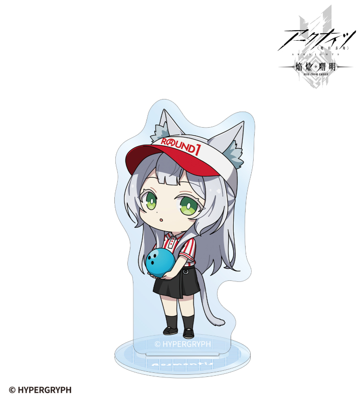 『アークナイツ【焔燼曙明/RISE FROM EMBER】』×「ROUND1」のコラボレーションアイテム「ロスモンティス ちびキャラ アクティビティスタッフver. アクリルスタンド」の登場です。