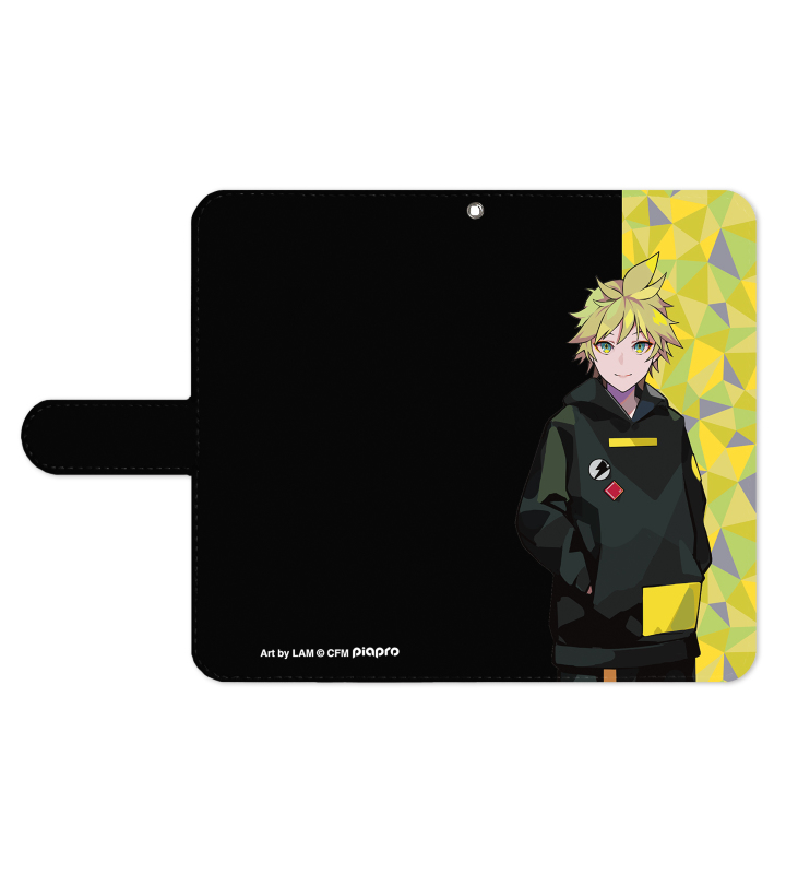 初音ミクたち『ピアプロキャラクターズ』×イラストレーター「LAM」のコラボレーションアイテム「鏡音レン Street Style Art by LAM 手帳型スマホケース」の登場です。